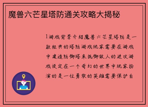 魔兽六芒星塔防通关攻略大揭秘
